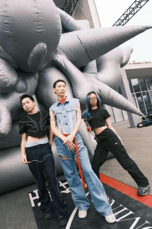 曾為Beyonce、Dojacat、KylieJenner等多位歐美一線藝人打造造型的00后設計師袁奇奇,攜品牌Buerlangma在FUNTEEN昘霆展廳展示了華麗的百米長裙,吸引了眾多買手、媒體及觀眾的關注。