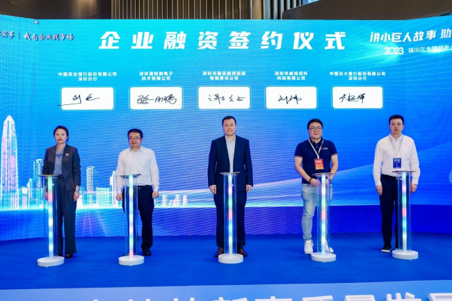 簽約儀式上,深圳市東方硅源科技有限公司與深圳市世紀聯(lián)合創(chuàng)新科技有限公司、深圳市中易騰達科技股份有限公司與深圳小澈科技有限公司進行了產(chǎn)銷合作簽約,合作金額達6500萬元;深圳通銳微電子技術(shù)有限公司與中國民生銀行股份有限公司深圳分行、深圳市威視佰科科技有限公司與中國光大銀行股份有限公司深圳進行了企業(yè)融資簽約儀式,融資金額達2500萬元。