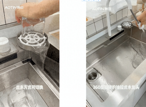 相比傳統(tǒng)水槽窄小淺、菜板鍋具清洗放不下的難題,奧田采用匠心工藝,實(shí)現(xiàn)了寬深兼?zhèn)涞拇笸ú墼O(shè)計(jì),800×415mm超大空間的水槽,諸如炒鍋等中式烹飪大型鍋具也能妥妥放下,方便又省心!360°旋轉(zhuǎn)抽拉式水龍頭,清潔無(wú)死角。