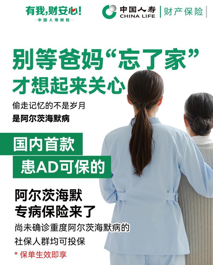 例如,今年9月17日,中國人壽財險聯(lián)合國壽健投、遠(yuǎn)盟卓康醫(yī)院共同研發(fā)的國內(nèi)首款罹患阿爾茨海默(AD)也可投保的“關(guān)愛腦健康”產(chǎn)品重磅推出。該產(chǎn)品不限地域,線上線下均可購買,30周歲以上、尚未確診重度阿爾茨海默病的有社保人群均可投保,且以近乎公益的價格為客戶實現(xiàn)利益最 大化,確保保費(fèi)低廉的同時做到高保障、高服務(wù)附加值,大大填補(bǔ)了國內(nèi)AD“保險+健康服務(wù)”的市場空白。