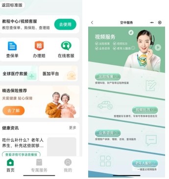 同時,中國人壽財險開發(fā)上線了“一路行空中智賠”車險線上理賠小程序老年適配版和非車險“云端賠”線上化理賠工具?!耙宦沸锌罩兄琴r”老年適配版字體段落較標(biāo)準(zhǔn)版增加1.3倍,頁面設(shè)置簡潔,功能按鈕醒目,可實現(xiàn)一鍵視頻呼入。