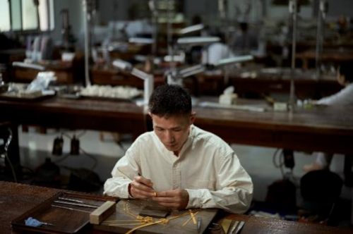 找尋、追溯,為保護中國的傳統(tǒng)非遺工藝,創(chuàng)始人遍尋中國各地臻寶首飾,花費近20年時間籌備、興建潮宏基臻寶首飾博物館,館藏超過3000件臻品。在眾多首飾臻寶中,非遺花絲鑲嵌,其工藝之精湛,讓創(chuàng)始人為之著迷。這項傳承久遠的中國傳統(tǒng)手工技藝,是“花絲”和“鑲嵌”兩種制作技藝的結合,也是燕京八絕里最繁復的貴金屬手工技藝,于2008年被納入國家級非物質文化遺產,卻一度瀕臨失傳。為了讓傳統(tǒng)文化新生,2009年,潮宏基創(chuàng)立“花絲鑲嵌工作室”,邀請名師出山授徒,先后培養(yǎng)了近百位年輕花絲工匠,竭力維護傳承非遺花絲工藝。