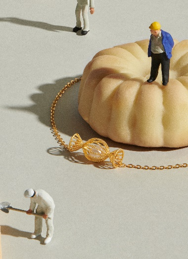 而更長遠的傳承,是使非遺能以新的形態(tài)活躍在現(xiàn)代年輕人的日常生活中,被認識、接受、熟知。2018年開始持續(xù)至今,潮宏基聯(lián)合公益組織“稀捍行動”發(fā)起了花絲駐地計劃,遍尋國內外知名設計師駐地,探討并實踐非遺花絲創(chuàng)新呈現(xiàn)形式,助力花絲技藝走進現(xiàn)代生活: 2019年花絲創(chuàng)研駐地設計師、日本設計天才NENDO佐藤大,以非遺工藝創(chuàng)新為依托點,將傳統(tǒng)花絲鑲嵌與甜美可愛的糖果造型結合,演繹“花絲糖果”系列。2023年,潮宏基攜手駐地設計師明碩,共同推出“花絲云起”系列,用非遺花絲打造云紋肌理,演繹“閑看云起”的松弛感。