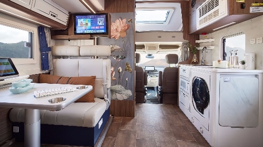 房車讓人們真正做到了行在路上、住在路上,說走就走、說停就停,能夠充分感受到旅行生活的豐富樂趣。而上汽大通MAXUS生活家V100房車就讓這種“生活”更為愜意舒適。其車內(nèi)擁有豐富的配置,雙開門車載大冰箱、微波爐、即熱飲水機(jī)、洗衣機(jī)、乳膠復(fù)合床墊等應(yīng)有盡有,并對功能區(qū)進(jìn)行了清晰地劃分,會客廳、廚房、臥室、衛(wèi)生間等十分明確,就是理想中的“移動的家”。