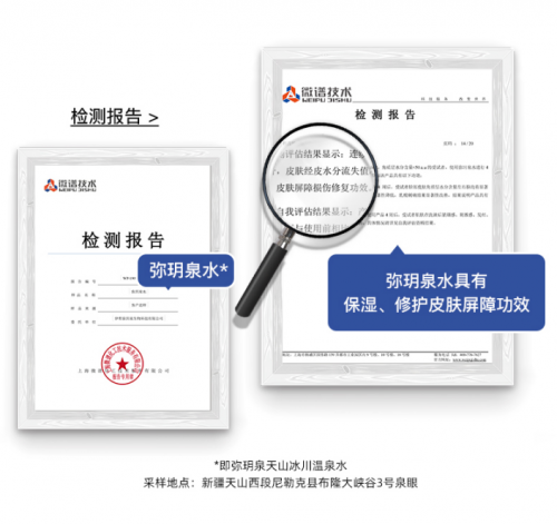 作為原創(chuàng)國(guó)貨品牌,彌玥泉一直根植新疆本土原料,不斷挖掘新疆成分,利用現(xiàn)代科技工藝,為產(chǎn)品賦能。其中,最核心的成分便是“天山冰川溫泉水”,也就是前文剛提到的的“彌玥泉溫泉水”。