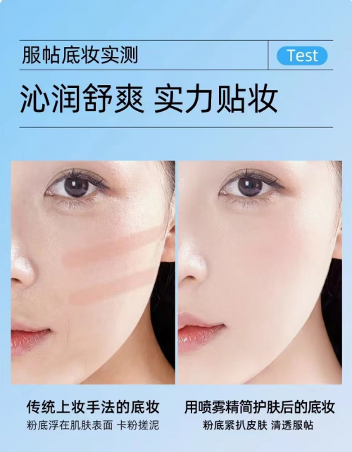 不少化妝師表示:妝前要精簡(jiǎn)護(hù)膚。肌膚吸收能力有限,妝前涂抹過(guò)于厚重,皮膚黏膩,反而會(huì)使底妝卡粉搓泥,而彌玥泉噴霧由于成分精簡(jiǎn),加上小分子團(tuán)水吸收快的特性,用完肌膚水潤(rùn)清爽不黏膩,底妝也會(huì)更扒肌膚。
