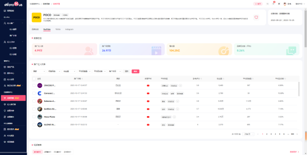 用戶可制定單個(gè)海外紅人營(yíng)銷推廣計(jì)劃項(xiàng)目,在系統(tǒng)內(nèi)導(dǎo)入紅人,與團(tuán)隊(duì)成員一同監(jiān)測(cè)紅人合作進(jìn)度、營(yíng)銷數(shù)據(jù)和費(fèi)用情況。