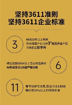 理想很豐滿,但創(chuàng)業(yè)之路卻充滿了挑戰(zhàn)。為了脫穎而出并吸引顧客,需要?jiǎng)?chuàng)新和品質(zhì)保證。他開始研究貓山王榴蓮,深入研究榴蓮的種植、果園選擇、樹齡挑選、選果的標(biāo)準(zhǔn)、水源的尋找、液氮工藝等不同方面,嘗試找出相對(duì)于別人的優(yōu)勢(shì),并希望能將榴蓮從非標(biāo)品做到一個(gè)相對(duì)標(biāo)品,成為榴蓮行業(yè)標(biāo)準(zhǔn)的引領(lǐng)者,“3611”企業(yè)標(biāo)準(zhǔn)就此誕生。