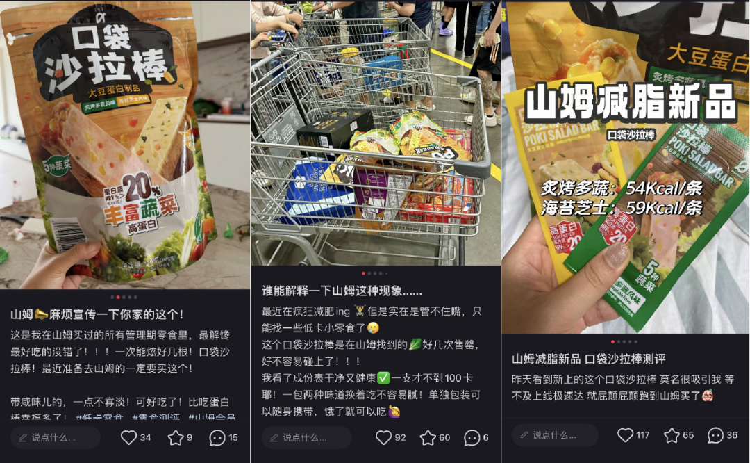 近幾年,在大健康的風(fēng)潮下,更健康、更營(yíng)養(yǎng)的飲食方式愈發(fā)受到消費(fèi)者的青睞,代餐、減脂、輕食等也成為飲食的關(guān)鍵詞。近期,國(guó)內(nèi)植物蛋白食品先鋒品牌星期零也推出了一款口袋沙拉棒,已上線山姆全國(guó)門店和山姆APP?!皽p脂零食”、“高蛋白”、“解饞飽腹”、“蔬菜營(yíng)養(yǎng)”、“大人小孩都可以吃”是小紅書用戶給這款產(chǎn)品的標(biāo)簽。