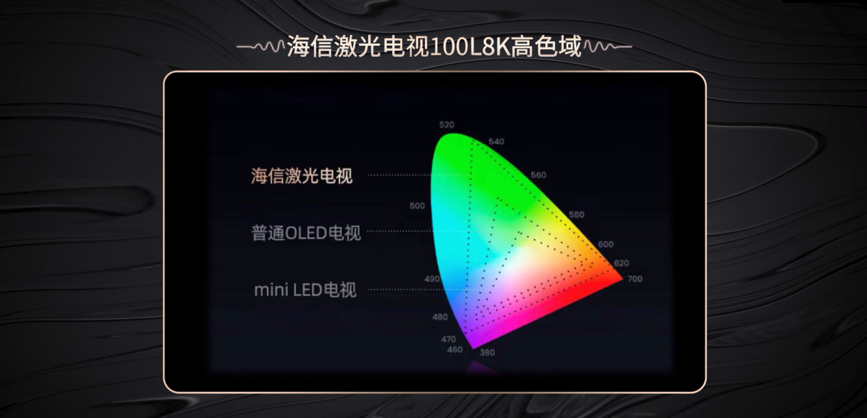 電視的色域覆蓋越廣,所能呈現出來的畫面色彩就越細膩豐富,海信L8K色域高達110%BT.2020,遠超普通電視,是全球顯示行業(yè)的最 高色域水平。