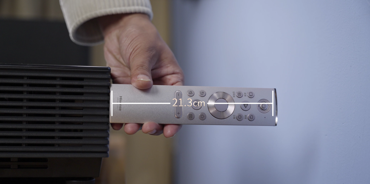 而海信激光電視L8K的超短焦投射技術,把投射比足足縮短到0.22:1,也就是說,電視主機距墻僅需21.3cm即可投射100英寸畫面,觀影過程中人員走動也不會影響投射畫面,觀影更自在。