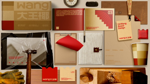 2024重新出發(fā)的大王椰,基于品牌一向氣派明亮的紅色系主調(diào)上,結(jié)合原木色形成組合配色,原來(lái)英文名“KING COCONUT”采用漢譯手法重新命名為"wang",且作為名稱(chēng)第 一階層應(yīng)用,同時(shí)提取“wang”中的“W”作為超級(jí)符號(hào),不僅打造出帶有W曲線的王冠狀新logo“板王標(biāo)”,更將其延展到整體的視覺(jué)矩陣中,讓大王椰通過(guò)超級(jí)符號(hào)強(qiáng)化品牌在用戶心智中的“品質(zhì)為王”的年輕化形象認(rèn)知。