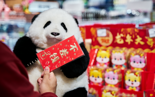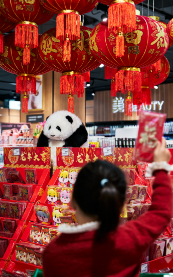 現在來華潤萬家龍華壹方天地店,你不僅能感受到最濃烈的年味氛圍,還能讓“花花”玩偶陪你逛超市,收獲來自國寶熊貓的“花”式祝福。
