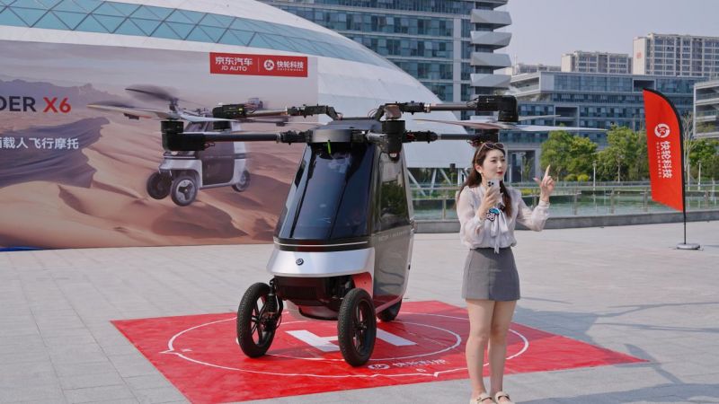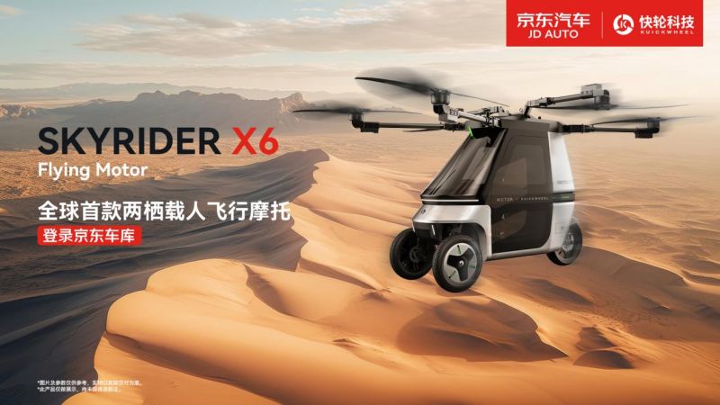 6月16日,快輪科技飛行摩托Skyrider X6再度亮相京東集團全球客服中心,并成功完成歷史性的首次公開試飛。這場盛況通過京東汽車直播間實時呈現,吸引了超40萬網友在線圍觀?!按蝻w的”通勤時代正加速駛入現實。