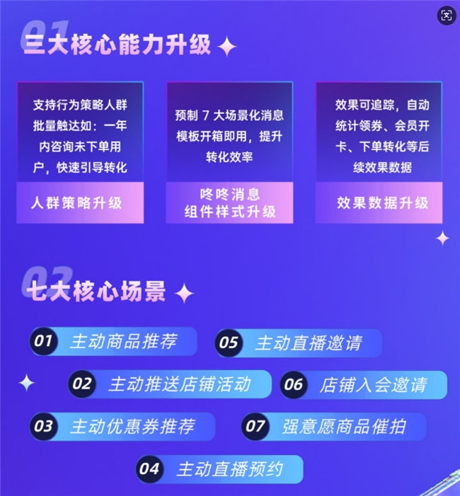 ?場(chǎng)景專屬:從自定義會(huì)員營(yíng)銷到全域引流、會(huì)員權(quán)益小部件、全鏈路互動(dòng)營(yíng)銷,覆蓋大促全鏈路場(chǎng)景,讓每個(gè)環(huán)節(jié)都有針對(duì)性打法。