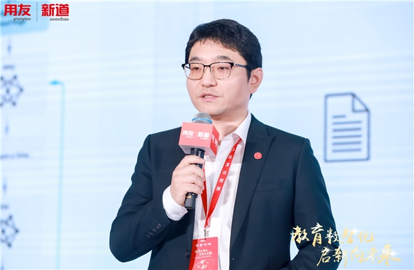 西安電子科技大學(xué)副校長王泉以“‘六新’推動高等教育的數(shù)字化轉(zhuǎn)型”為題進行分享。他表示,信息技術(shù)發(fā)展為教育數(shù)字化轉(zhuǎn)型提供了技術(shù)支撐。西安電子科技大學(xué)建設(shè)人工智能+教育標(biāo)桿校的優(yōu)勢,以數(shù)字化轉(zhuǎn)型重構(gòu)人才培養(yǎng)的體系,以“六新”建設(shè)推動教育數(shù)字化轉(zhuǎn)型。隨后,他詳細(xì)介紹了處處能學(xué)、時時可學(xué)的育人“新環(huán)境”,類型重構(gòu)和供給方式重構(gòu)的“新資源”,基于信息技術(shù)和智能技術(shù)的“新教學(xué)”,大數(shù)據(jù)支撐下的教育教學(xué)“新評價”,人機結(jié)合、人技結(jié)合的能力“新培訓(xùn)”,基于數(shù)據(jù)驅(qū)動的高校智治體系“新治理”的“六新”內(nèi)容和舉措。王泉表示,西安電子科技大學(xué)與新道科技進行了一系列合作,未來也期待雙方能繼續(xù)深化產(chǎn)學(xué)研合作,推動高等教育發(fā)展。