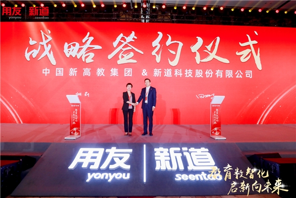 為深化產(chǎn)教融合,服務(wù)構(gòu)建高質(zhì)量教育體系,推動教育創(chuàng)新發(fā)展。新道科技與河北省高等教育學(xué)會舉行戰(zhàn)略簽約儀式。河北省教育廳一級巡視員、河北省高教學(xué)會會長王廷山與新道科技股份有限公司董事長兼總裁陳強兵上臺簽訂戰(zhàn)略合作協(xié)議。隨后,新道科技和中國新高教集團舉行戰(zhàn)略簽約儀式,中國新高教集團學(xué)生與企業(yè)服務(wù)部總經(jīng)理姚莉與新道科技股份有限公司副總裁田鵬上臺簽訂戰(zhàn)略合作協(xié)議。