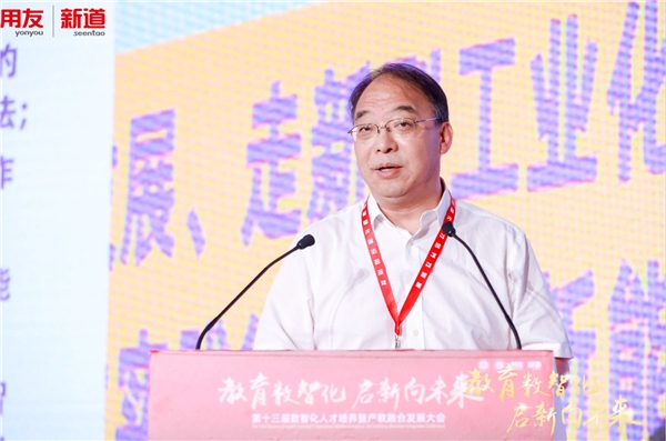 中國高等教育學(xué)會副會長、秘書長姜恩來在致辭中提出,在數(shù)字化時代,教育發(fā)展的新動能新優(yōu)勢就在于與信息技術(shù)的深度融合,實現(xiàn)數(shù)字化轉(zhuǎn)型升級。這為探索產(chǎn)教融合發(fā)展新模式,推動教育要素、產(chǎn)業(yè)要素和創(chuàng)新要素融合創(chuàng)新指明了前進方向,提供了根本遵循。他表示,數(shù)智化人才培養(yǎng)暨產(chǎn)教融合發(fā)展大會連接了政 府、高校、行業(yè)企業(yè)等多方主體,匯集了多方智慧,總結(jié)了豐富經(jīng)驗,搭建了校企合作、校校合作的交流平臺,將人才培養(yǎng)與產(chǎn)業(yè)發(fā)展融合,為新時代人才培養(yǎng)做出了積極貢獻。姜恩來指出,培養(yǎng)數(shù)智化人才要聚焦普惠教育服務(wù),創(chuàng)造更加包容公平的學(xué)習(xí)環(huán)境;要發(fā)揮產(chǎn)業(yè)優(yōu)勢,深化產(chǎn)教融合協(xié)同育人;要以數(shù)智化為抓手,全面提高人才培養(yǎng)能力。