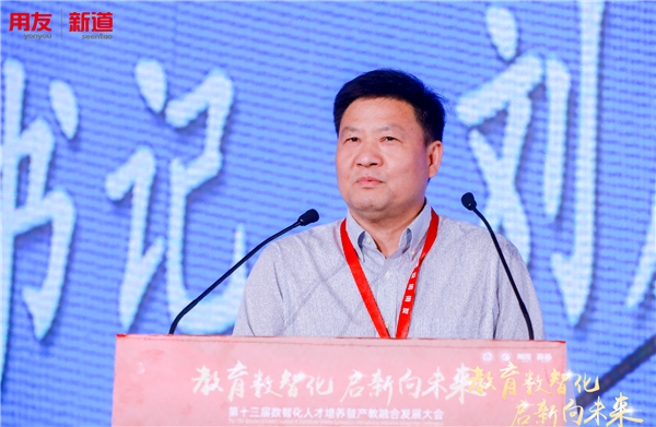 新道科技股份有限公司副總裁賈大明以“教育數(shù)智化啟新向未來”為題進行演講。他表示,數(shù)字中國已經(jīng)走深走實,數(shù)字教育正在開啟新程,教育數(shù)智化將走向數(shù)智化、融合化、協(xié)作化、國際化。突破路徑依賴,跳出教育看教育數(shù)智化,立足全局看教育數(shù)智化。教育數(shù)智化的核心是教學(xué),教育數(shù)智化不是單純的智慧校園,不是技術(shù)與教育的簡單疊加,而是對教育深度的變革重塑。賈大明介紹,新道科技打造了數(shù)智工科、數(shù)智財經(jīng)、數(shù)智財經(jīng)、新雙創(chuàng)四大數(shù)智教育體系以及DBE Cloud 數(shù)智實踐平臺,AIE數(shù)智商業(yè)綜合實踐平臺,新道教育元宇宙實驗實訓(xùn)平臺,青椒課堂平臺,S+ Cloud認(rèn)知實踐平臺五大產(chǎn)品。新道科技以數(shù)字產(chǎn)業(yè)領(lǐng)跑教育數(shù)智化,從內(nèi)容層、應(yīng)用層、平臺層、環(huán)境層四個方面為院校提供校級數(shù)智化教學(xué)改革方案。他表示,教育數(shù)智化需要攜手產(chǎn)業(yè),共同完成范式躍遷;并擁抱頭部企業(yè),立足數(shù)字中國,服務(wù)產(chǎn)業(yè)升級,共創(chuàng)數(shù)字教育。