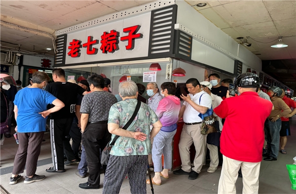 我乘坐1號線到彭浦新村下車2號口出來,坐741到保德路三泉路下車,走到三泉路900弄對面工商銀行,入口進去就是東康菜市場,發(fā)現第 一家就是老七粽子店,一大早就看到一群人在排隊!
