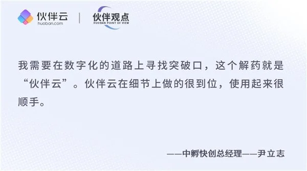 尹立志:中孵快創(chuàng)利用一年多時(shí)間,正式將所有業(yè)務(wù)切換到伙伴云平臺(tái)。