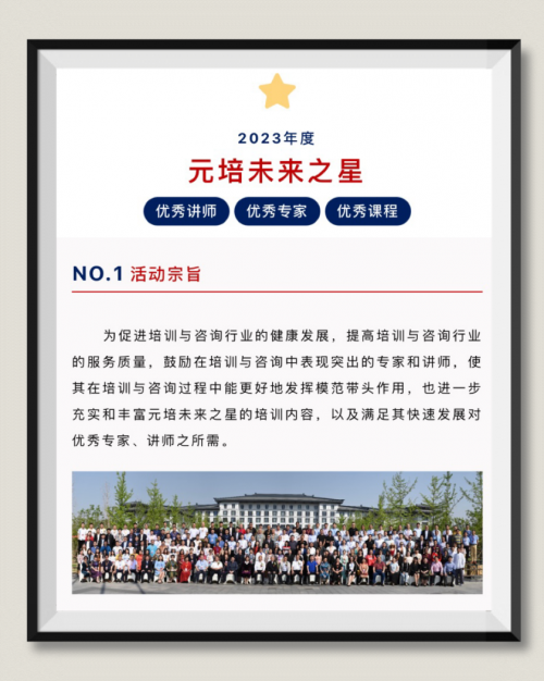 鑒于此,近日,在元培工匠專家谷的精心組織,由元培商學(xué)院、元培工匠職業(yè)技能技能鑒定中心、全國聯(lián)合誠信服務(wù)平臺等六大機構(gòu),聯(lián)合主辦的“2023年度元培未來之星·優(yōu)秀講師”評選活動,在燕園人合集團辦公室,已正式拉開帷幕,期待各類培訓(xùn)師踴躍參評。