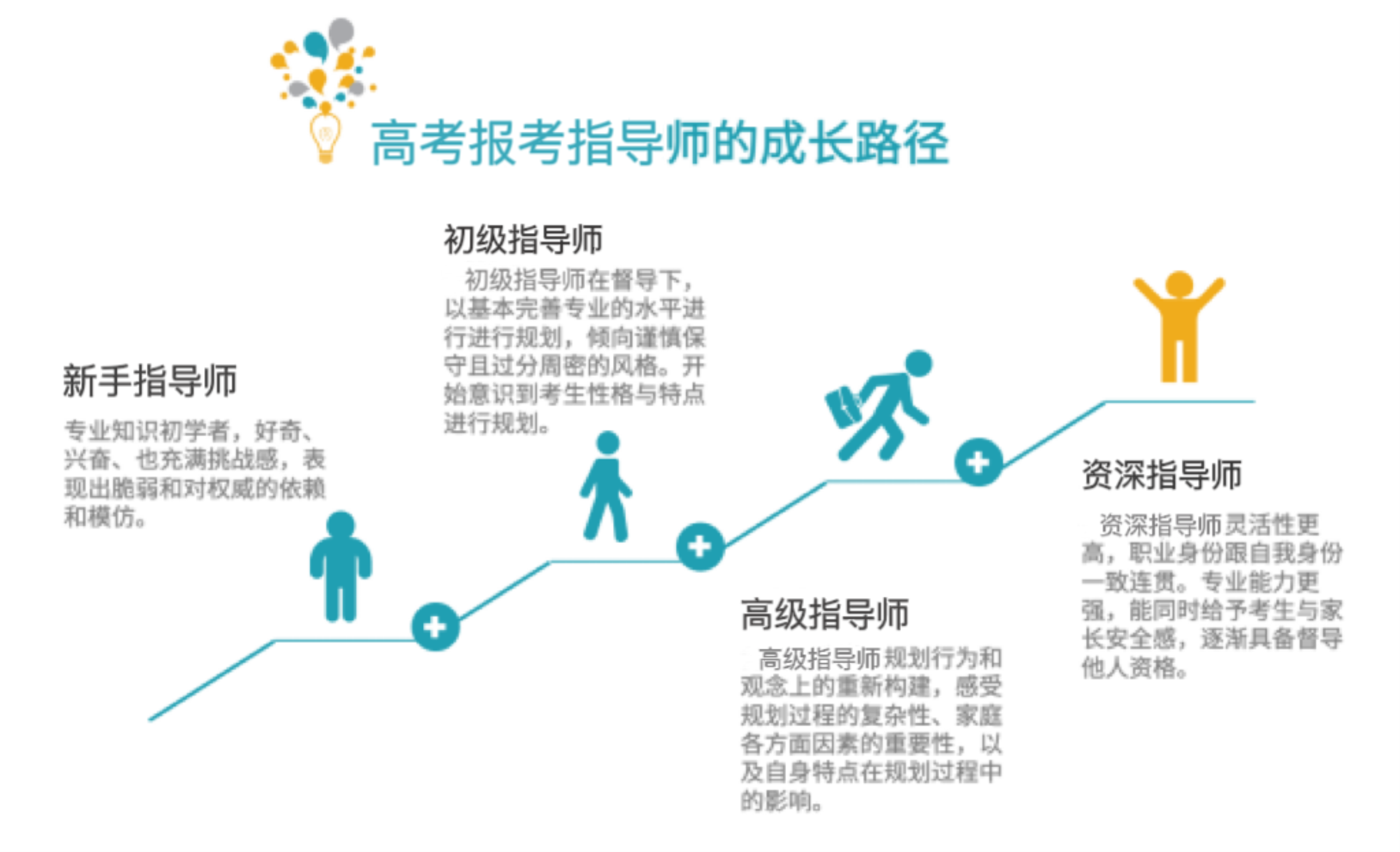 高考報考指導(dǎo)師的職業(yè)/專業(yè)成長,是一條非常非常長的路徑,身處其中,難免些許困惑,不識廬山。挖寶于學(xué)術(shù)研究,我們?yōu)榇蠹铱偨Y(jié)了成為一個指導(dǎo)師會經(jīng)過的5個階段,幫你看清高考報考指導(dǎo)師的職業(yè)路徑到底是如何的?
