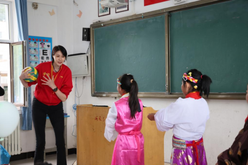 女排奧運(yùn)冠軍趙蕊蕊給孩子們上體育課