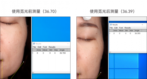 效果:EMS微電流快速提拉,使用前后效果(V臉角度變化)