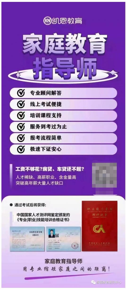 為響應(yīng)國家政策,扶持行業(yè)發(fā)展,培養(yǎng)更專業(yè)的家庭教育人才,惠及更多家庭,全國《家庭教育指導(dǎo)師》培訓(xùn)考核單位,現(xiàn)面向全社會招生!此次立法提到的《家庭教育指導(dǎo)師》究竟是怎樣的?怎么成為《家庭教育指導(dǎo)師》,以及就業(yè)前景和薪資待遇如何,大家跟著K仔一起來了解下: