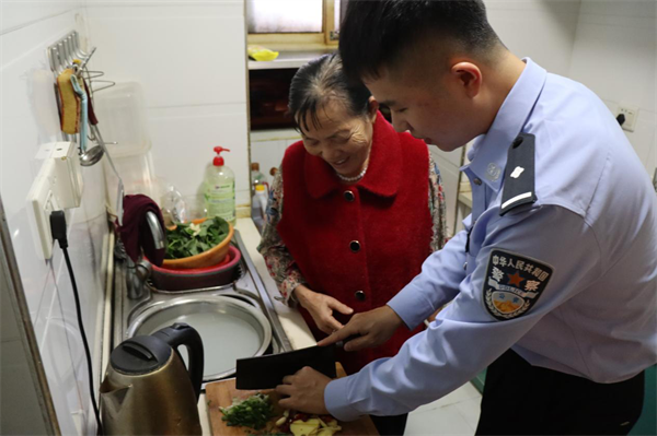 干警肖宇軒為老人做飯(攝影吳世龍)