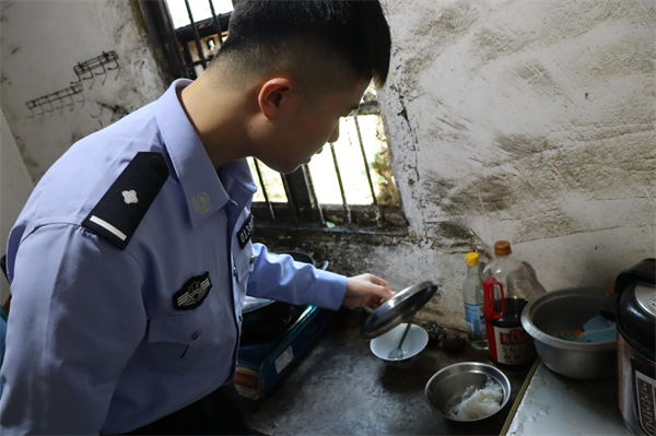 干警肖宇軒了解老人日常飲食(攝影吳世龍)