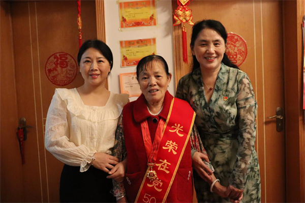 學(xué)院領(lǐng) 導(dǎo)與佩戴“在黨五十周年”紀(jì)念章的老人合影