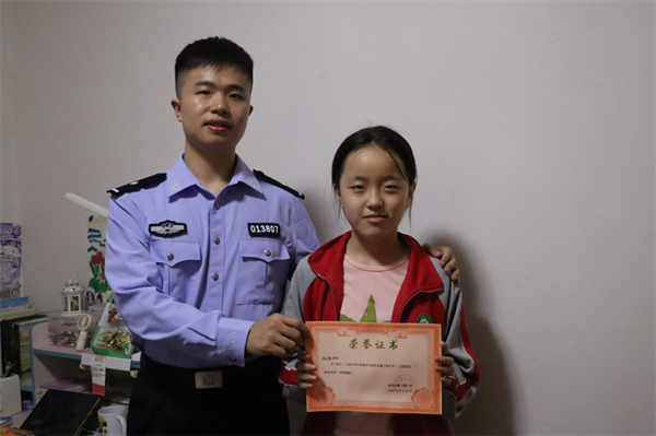 干警肖宇軒在項(xiàng)之媛學(xué)業(yè)上給予鼓勵(lì)、全心支持(攝影吳世龍)