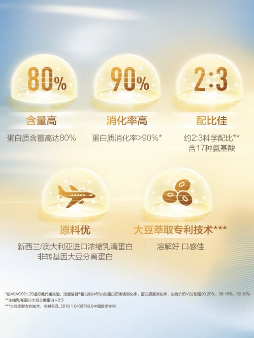 據(jù)悉,每100g湯臣倍健蛋白粉的蛋白質含量在80%左右,吸收率可達90%,能夠為人體補充優(yōu)質蛋白質。為了改善單一蛋白配方營養(yǎng)不充足的問題,湯臣倍健創(chuàng)新采用了由新西蘭進口奶源提取的乳清蛋白和東北非轉基因優(yōu)質大豆蛋白組成的動植物雙蛋白配方,在黃金動植物雙蛋白2:3科學配比的加持下,蛋白營養(yǎng)更豐富,也更易吸收,并且乳清蛋白中的免疫球蛋白和乳鐵蛋白都具有免疫活性。此外,湯臣倍健蛋白粉中還富含天冬氨酸、蘇氨酸、絲氨酸、谷氨酸、甘氨酸、丙氨酸、胱氨酸等人體所需的17種氨基酸,強強聯(lián)合,能夠有效提升人體免疫力。