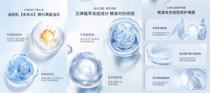 豆妃凈痘美膚水蘊(yùn)含7種植物萃取祛痘成分,包括牛蒡、苦參、牡丹根皮、積雪草等,其蘊(yùn)含的成分具有深層控油、有效祛痘功效,使其不僅可以直擊痘根消滅痘痘,還能調(diào)節(jié)痘肌生態(tài),降低長痘和痘痘復(fù)發(fā)的概率。