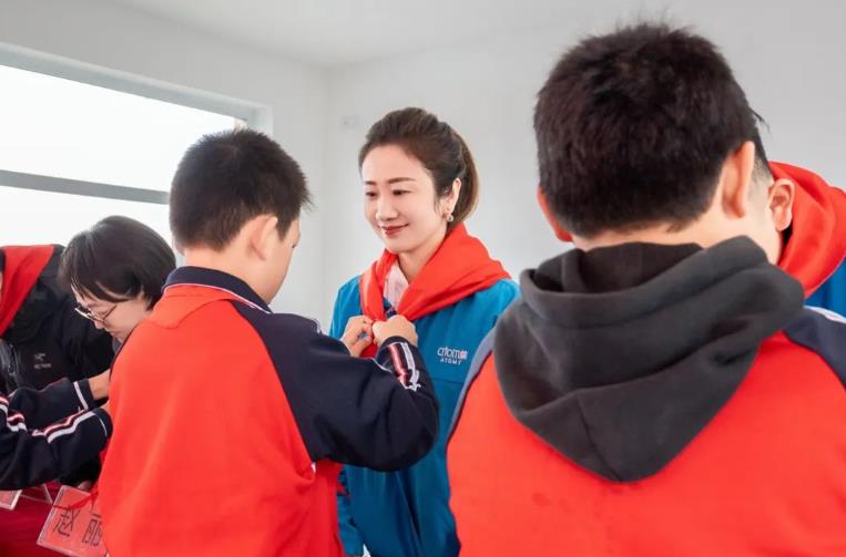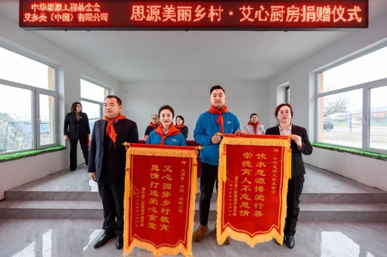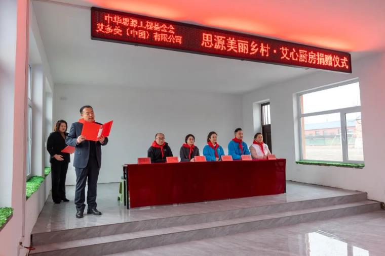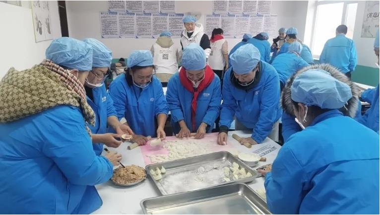 艾多美(中國(guó))有限公司東北區(qū)總經(jīng)理裴銀花,現(xiàn)場(chǎng)為學(xué)校的艾心食堂揭牌,隨即艾多美志愿者進(jìn)入學(xué)校食堂后廚,為當(dāng)?shù)氐睦蠋煂W(xué)生親手包餃子,奉獻(xiàn)一份愛心。