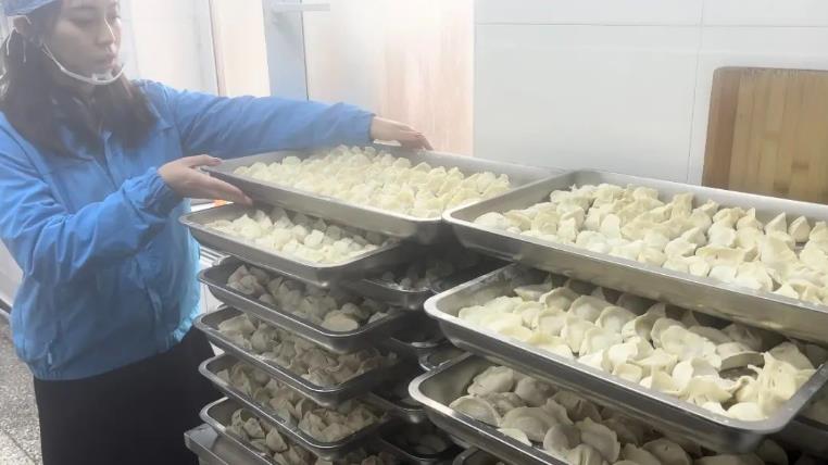 艾多美志愿者們?cè)谝黄鹌錁啡谌?,人多力量大,不一?huì)便包出了多份餃子。艾心廚房?jī)?nèi)炊煙裊裊,香氣誘人,大家一起分享美味的餃子。