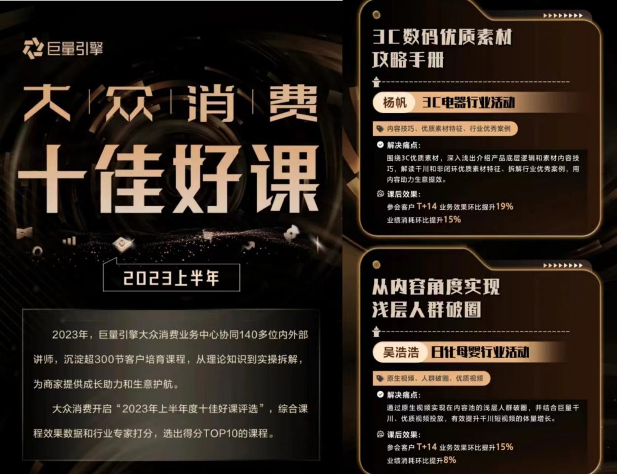 據(jù)介紹,2023年上半年,巨量引擎大眾消費(fèi)協(xié)同140多位內(nèi)外部講師,研發(fā)了超過300節(jié)客戶培育課程,其中外部視角原創(chuàng)課程超過160節(jié),從行業(yè)前瞻、理論知識到實操拆解,為商家解決疑難雜癥,還實現(xiàn)了系統(tǒng)智能診斷推課及效果回掃,助力商家長效增長。