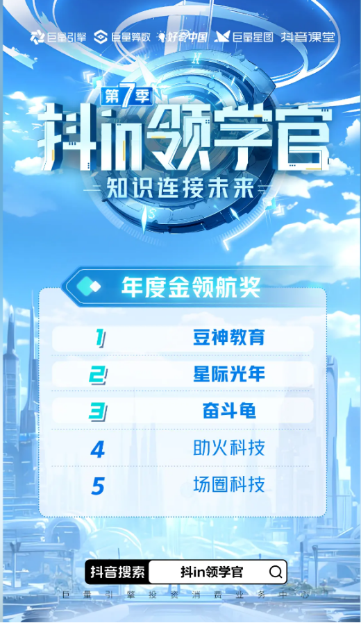 日前,以“讓知識發(fā)光”為主題的2024巨量引擎教育Future知識生態(tài)大會在三亞成功舉辦。憑借出色的行業(yè)表現(xiàn),豆神教育從眾多品牌中脫穎而出,榮獲巨量引擎2023年度抖in領學官“金領航獎”。