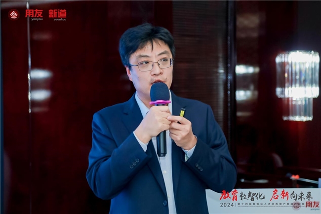 用友網(wǎng)絡(luò)股份有限公司U9 cloud實(shí)施總監(jiān)楊運(yùn)良就“數(shù)智時(shí)代人才需求與培養(yǎng)——數(shù)智化工程師成長之路”發(fā)表演講。他分享了企業(yè)數(shù)智化轉(zhuǎn)型所需的人才能力模型,人才培養(yǎng)模式和U9 cloud實(shí)施策略的全面視角,強(qiáng)調(diào)了教育和培訓(xùn)在滿足企業(yè)對(duì)數(shù)智化人才需求中的重要作用。