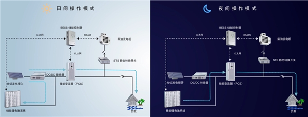 對(duì)于整個(gè)微電網(wǎng)儲(chǔ)能系統(tǒng)而言,儲(chǔ)能的本質(zhì)在于“調(diào)”,其核心是控制系統(tǒng),微電網(wǎng)必須依賴其形成可調(diào)度、可控制、平衡的運(yùn)行模式。伊頓集裝箱微電網(wǎng)儲(chǔ)能系統(tǒng)云端部署儲(chǔ)能控制器(BESS),通過(guò)儲(chǔ)能充放一體調(diào)度,可實(shí)現(xiàn)日間太陽(yáng)能光伏直發(fā)直供,同時(shí)進(jìn)行本地儲(chǔ)能;夜間通過(guò)儲(chǔ)能鋰電池系統(tǒng)為負(fù)載供電。在儲(chǔ)能控制器的調(diào)度下,儲(chǔ)能鋰電池系統(tǒng)充放電狀態(tài)和光伏出力得到協(xié)調(diào)優(yōu)化,達(dá)到了充分消納光伏能源的目的。