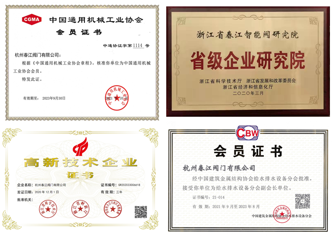 春江閥門以“不斷創(chuàng)新,追求卓越;誠實(shí)守信,共同發(fā)展”為企業(yè)宗旨,重視技術(shù)創(chuàng)新、產(chǎn)品研發(fā)及產(chǎn)學(xué)研合作,致力于先進(jìn)技術(shù)建設(shè)。為國家重點(diǎn)扶持的高新技術(shù)企業(yè)、國家知識產(chǎn)權(quán)優(yōu)勢企業(yè)、浙江省知識產(chǎn)權(quán)示范企業(yè)、浙江省專精特新中小企業(yè),是浙江省閥門標(biāo)準(zhǔn)化技術(shù)委員會(huì)委員、中國通用機(jī)械協(xié)會(huì)閥門會(huì)員、中國建筑金屬結(jié)構(gòu)協(xié)會(huì)給水排水設(shè)備副會(huì)長單位、中國城鎮(zhèn)給水排水協(xié)會(huì)會(huì)員單位、中國水利協(xié)會(huì)會(huì)員單位、中國五金制品協(xié)會(huì)閥門委員會(huì)副會(huì)長、浙江省城市水業(yè)協(xié)會(huì)會(huì)員、浙江省建設(shè)材料管理協(xié)會(huì)理事、全國防倒流技術(shù)學(xué)組副組長單位。