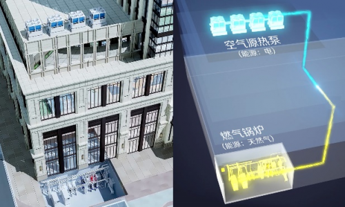 改造后:經(jīng)過(guò)專業(yè)診斷量身定制的解決方案,選用1MW低氮燃?xì)忮仩t+3臺(tái)50匹低溫空氣源熱泵+CIC-Pro中控器供暖