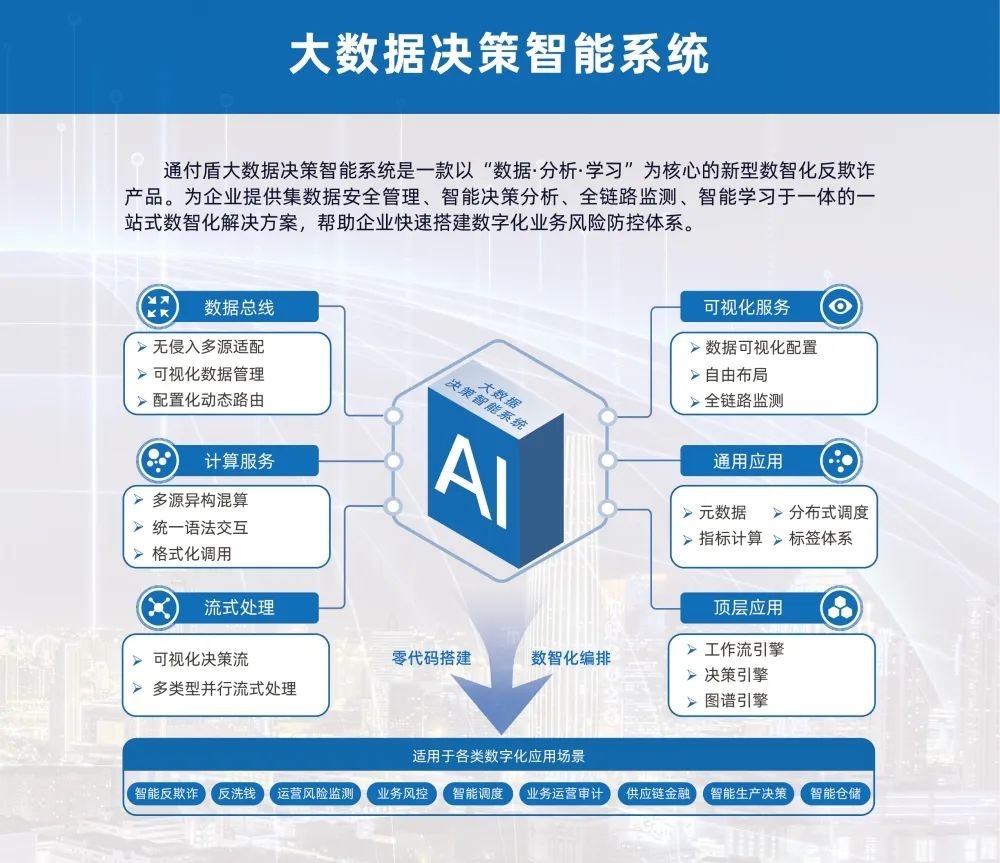 決策智能產(chǎn)品體系面向金融、能源、通信等多個(gè)領(lǐng)域企業(yè),協(xié)助客戶(hù)快速落地智能業(yè)務(wù):金融風(fēng)控、信貸審核、賬戶(hù)監(jiān)測(cè)等多種場(chǎng)景。通過(guò)大數(shù)據(jù)挖掘與機(jī)器學(xué)習(xí)等數(shù)字化技術(shù)不斷學(xué)習(xí)更迭,助力業(yè)務(wù)安全發(fā)展;通過(guò)決策軌跡分析、關(guān)聯(lián)交易及關(guān)系圖譜分析,呈現(xiàn)用戶(hù)交易鏈路、精準(zhǔn)定位資金流向、溯源風(fēng)險(xiǎn)交易事件。