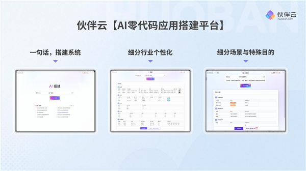2023年4月20日,伙伴云通過視頻號直播形式,由伙伴云CEO戴志康正式對外發(fā)布伙伴云AI搭建功能,并向大家演示如何通過一句話,就能通過伙伴云AI功能快速搭建企業(yè)自身業(yè)務(wù)系統(tǒng)?;锇樵啤続I零代碼應(yīng)用搭建平臺】,讓交付流程,從“需求-建模-搭建-調(diào)試-應(yīng)用”變成了交互式語言生成應(yīng)用。復(fù)雜的需求可以直接被轉(zhuǎn)化成復(fù)雜的表結(jié)構(gòu)、字段類型、關(guān)聯(lián)對應(yīng)、流程邏輯和數(shù)據(jù)指標(biāo),無需搭建者動腦。有了AI的加持,將進(jìn)一步加速“全民開發(fā)時代”的進(jìn)程,讓沒有編程背景的業(yè)務(wù)人員,也能快速搭建自己的零代碼AI應(yīng)用。