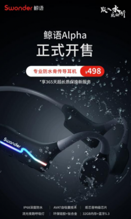 鯨語Alpha限時優(yōu)惠價498元,現(xiàn)已全面開售,用戶可在京東鯨語旗艦店,及線下部分?jǐn)?shù)碼門店、游泳健身館及相關(guān)用品門店進行購買。首批用戶,可享受質(zhì)量問題一年超長免費質(zhì)保換新服務(wù)。