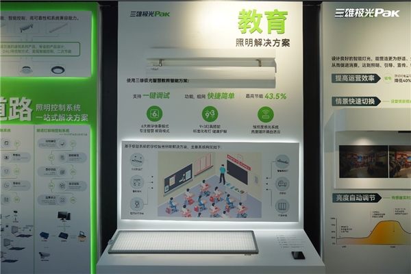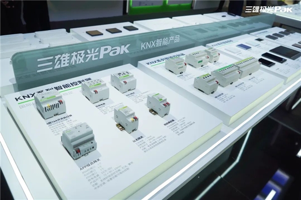 除此以外,三雄極光智能產(chǎn)品也是一大看點,展館內(nèi)以極智系列、KNX系列、靈智系列、全屋智能為劃分,一一陳列產(chǎn)品方便觀展者了解。