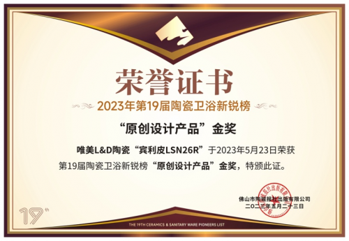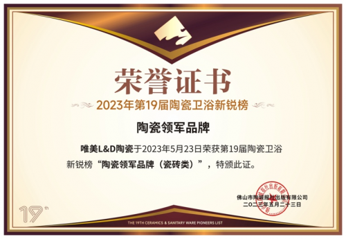 第19屆新銳榜吸引了200多家企業(yè)參與角逐,非凡盛況,競爭激烈。唯美L&D陶瓷在超200家企業(yè)和品牌的競逐中脫穎而出,攬獲“陶瓷領(lǐng)軍品牌”、“原創(chuàng)設(shè)計產(chǎn)品”金獎以及“品質(zhì)交付創(chuàng)新獎” 金獎三項重量級大獎。