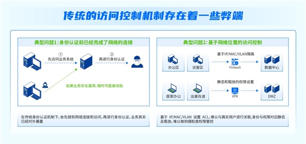 在整體網(wǎng)絡(luò)架構(gòu)中,遠(yuǎn)程辦公只是一個相對獨立的場景,用戶的業(yè)務(wù)訪問方式?jīng)]有發(fā)生質(zhì)的改變,依舊是先連接、后認(rèn)證。一旦攻擊者突破邊界,整個內(nèi)網(wǎng)將完全暴露。無論是攻防演練所暴露出的問題,還是真實世界中發(fā)生的網(wǎng)絡(luò)安全事件,都在不斷警示著我們:大部分安全事件的源頭都來自于內(nèi)部。